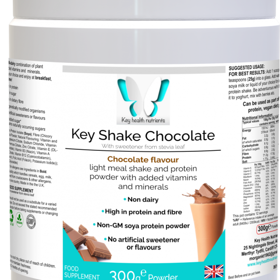 Soy Protein Isolate (Soya); Fibre (Chicory Root Extract); Cocoa Powder; Flavouring; Vitamin and Mineral Blend ((Magnesium Citrate, Sodium Chloride, Vitamin C (Ascorbic Acid), Ferrous Citrate, Zinc Citrate, Vitamin E (DL-AlphaTocopheryl Acetate), Vitamin B3 (Niacin), Vitamin A (Acetate), Copper Citrate, Vitamin B12 (Cyanocobalamin), Vitamin B2 (Riboflavin), Folic Acid (Folacin), Potassium Iodide)); Sweetener (Steviol Glycosides).