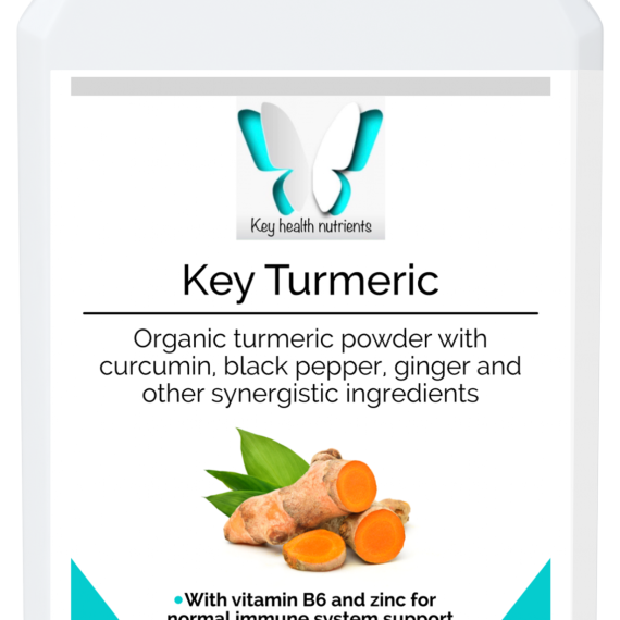 Each capsule combines organic turmeric powder PLUS high-potency turmeric extract (95% curcumin – the active ingredient) with ginger root extract (5% gingerols), cayenne extract (100au capsaicin), piperine (black pepper) extract, zinc citrate and vitamin B6. The piperine has been included to potentiate the absorption and effect of the other herbal actives – a well-known herbalists’ combination.
